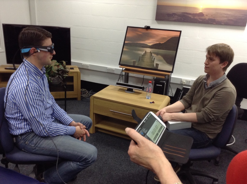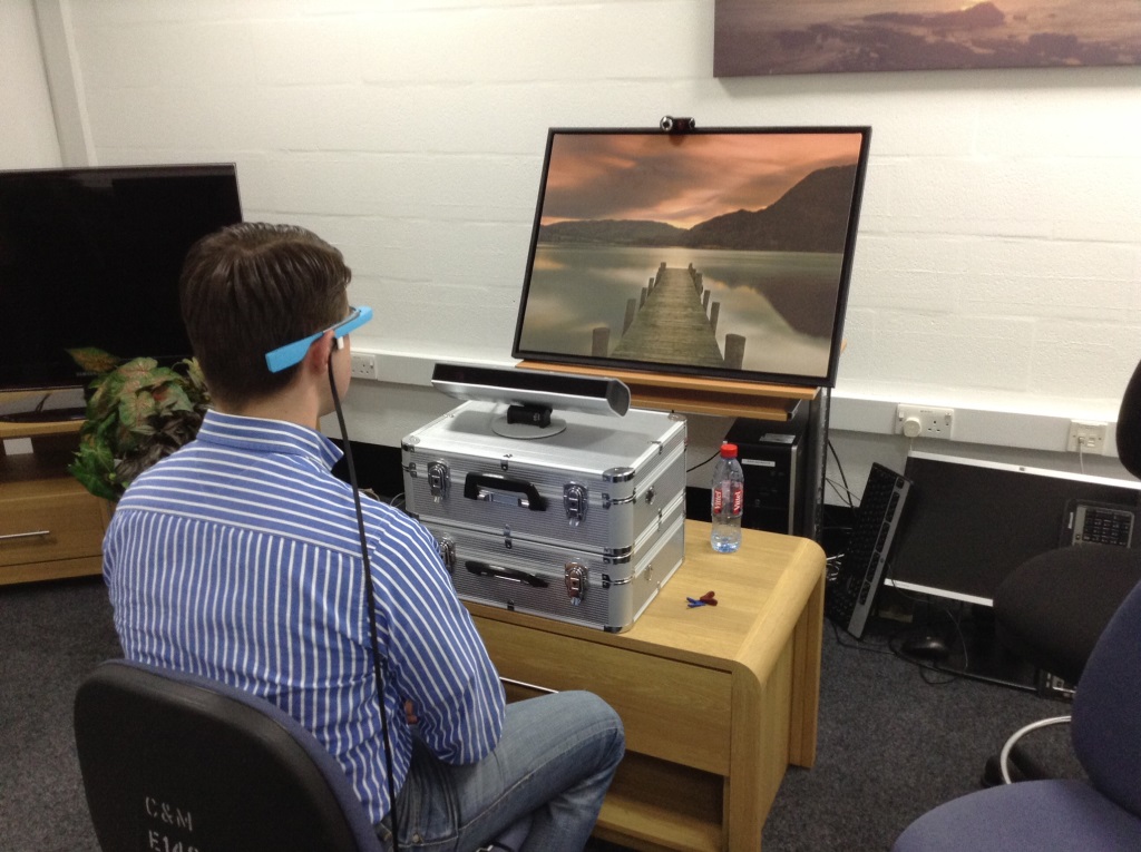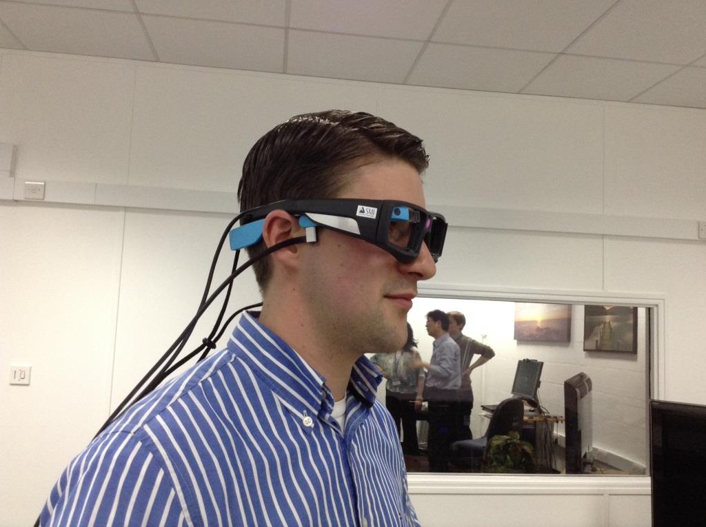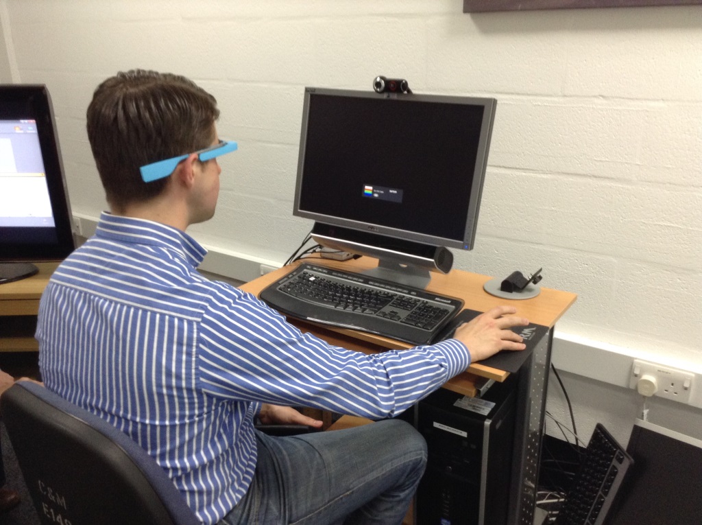 Using eye and gaze tracking Googles in conjunction with Google Glass at the the MMU Computer Science Department in an experiment to evaluate peoples use of Glass when using apps and interacting with the real world. Experiments also includes stationary gaze tracking equipment to evaluate frequency of eye movements towards the prism, the average interaction lengths with apps and perceived distraction from normal conversations by other participants.